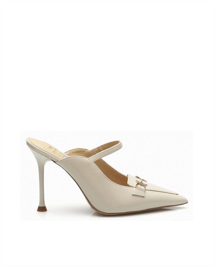 Miguel VieiraSapato de salto Miguel Vieira em Pele, com berloques e aplicação dourada2 CoresAdicionar
