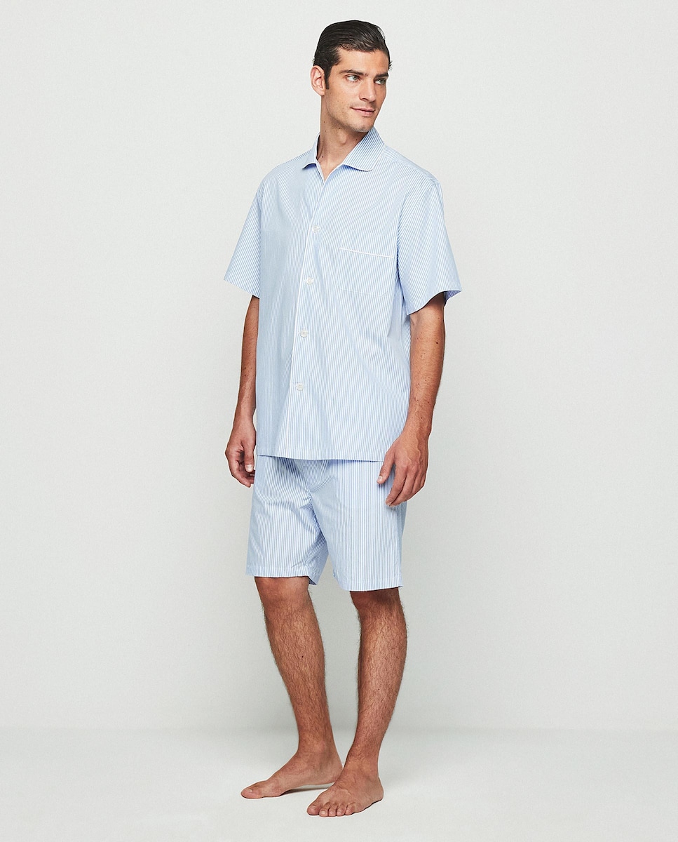 Pijama Curto de Algodão Às Riscas em Azul