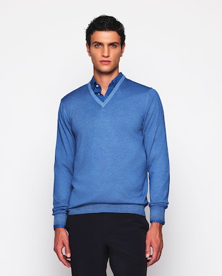 Camisola de Malha 100% Caxemira com Gola em Bico