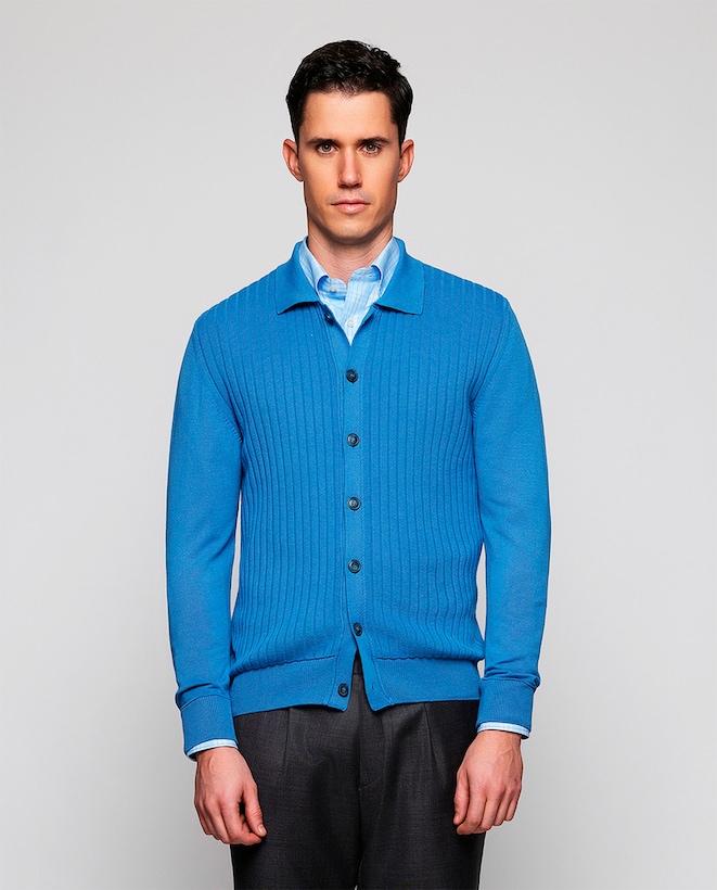 Casaco de Malha com Botões e Colarinho de Camisa