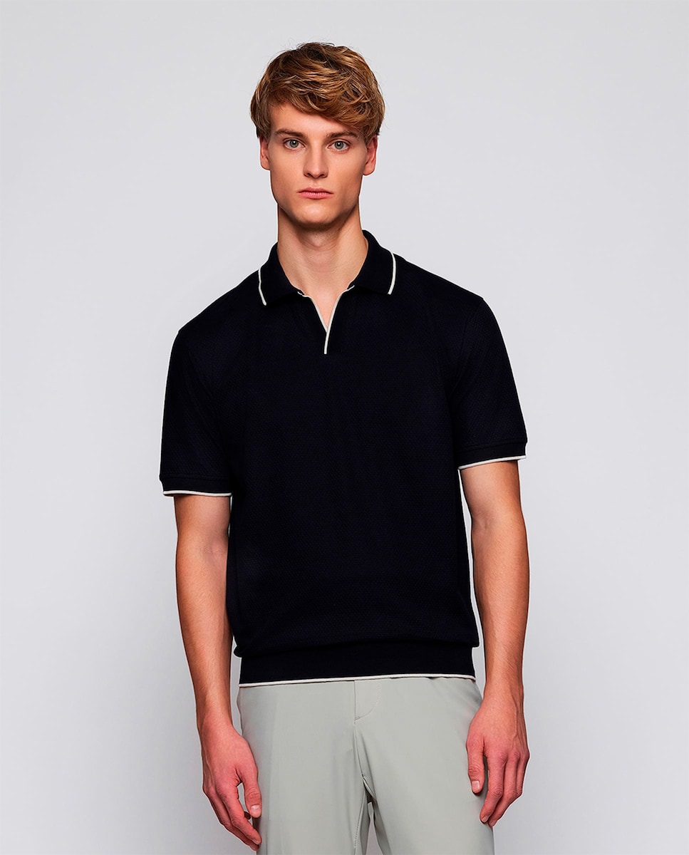 Polo de Manga Curta com Fecho de Correr Tamanhos Grandes