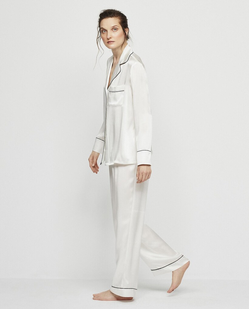Pijama Completo Comprido Liso de Seda Elástica
