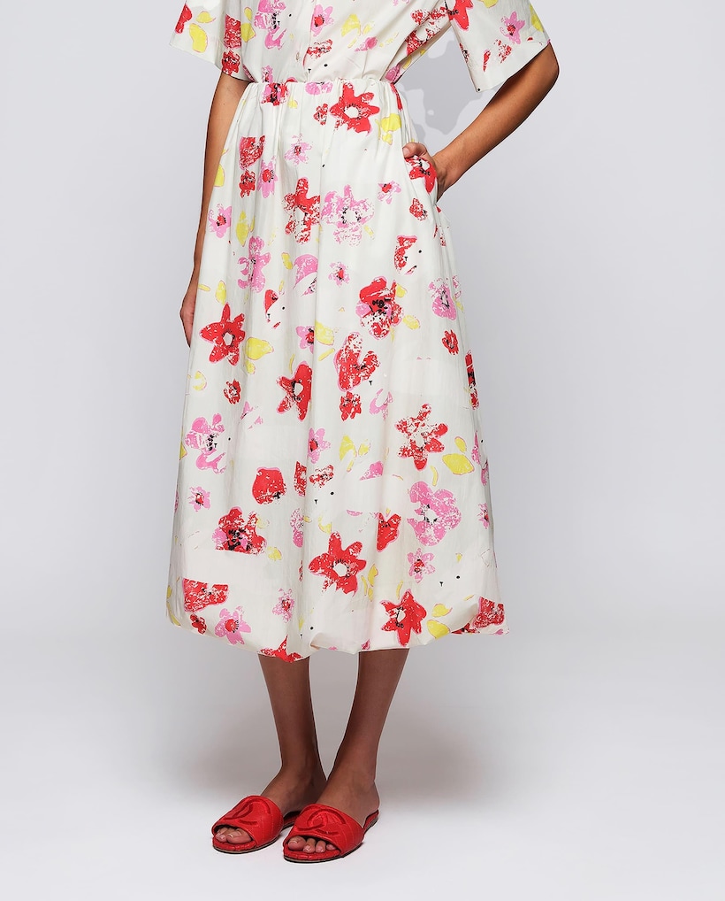 Saia Midi Abalonada com Estampado Figurativo