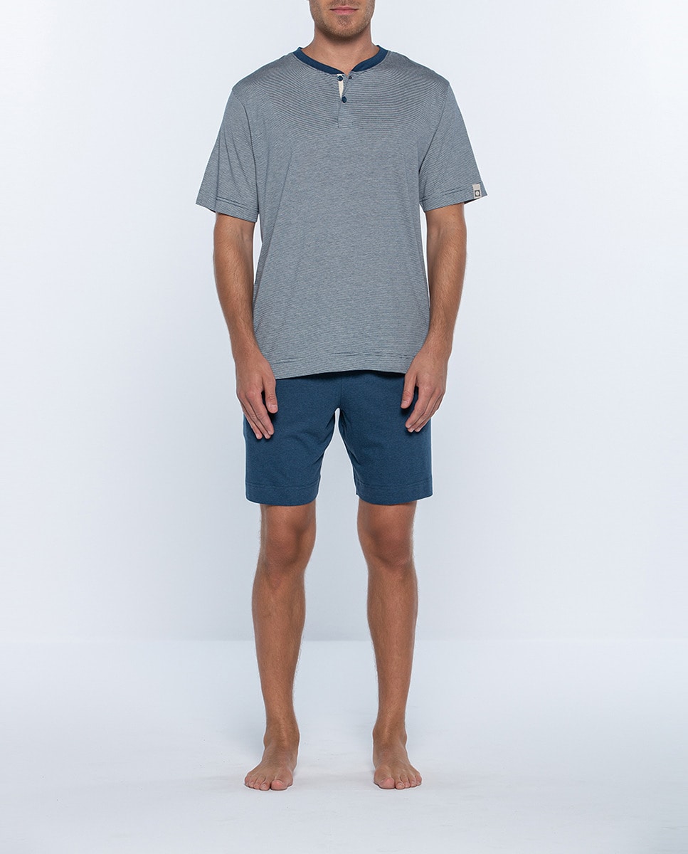 Pijama Curto de Manga Curta em Algodão e Bambu