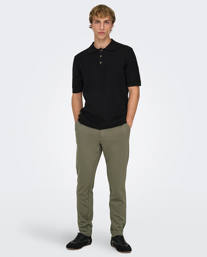 Calças clássicas pretas slim fit. Braguilha com botão e fecho-éclair.