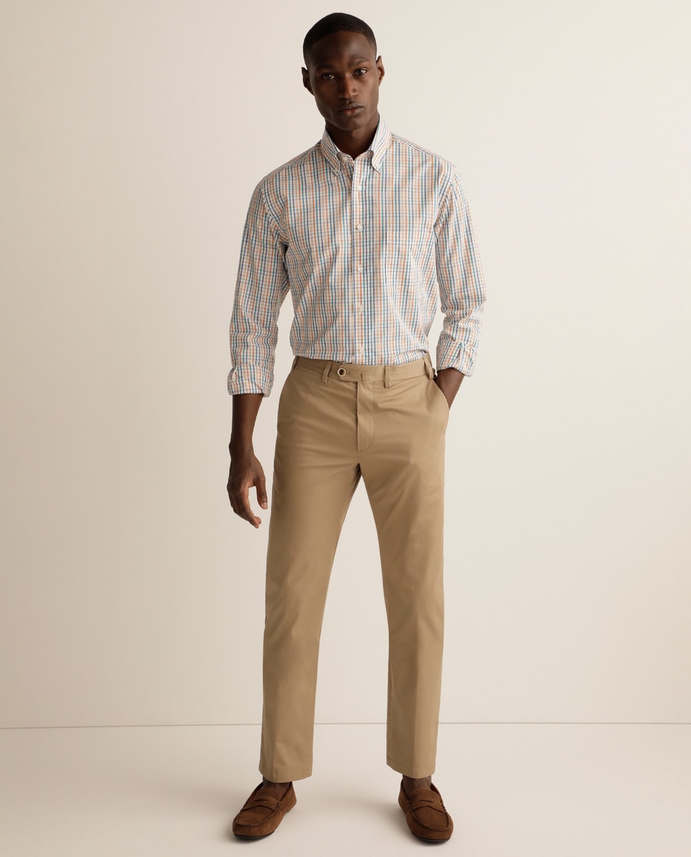 Calças chino regular camel de homem