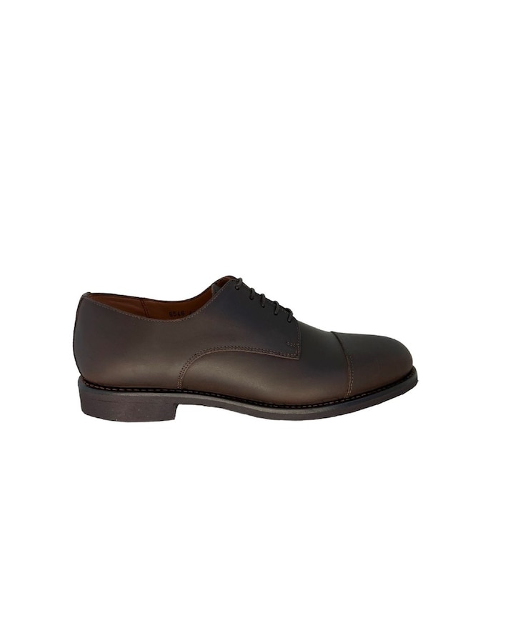 Modelo derby ELITE de biqueira lisa, feito a partir de um couro rústico castanho e uma sola de borracha altamente resistente e discreta. É um modelo feito 100% em Portugal de forma artesanal, no processo de fabrico "Goodyear Welted", que lhe confere elevada durabilidade e resistência. Modelo com elevado conforto, apresenta uma palmilha de couro incorporada que proporciona a respirabilidade ao pé. É caracterizado por ser casual, intemporal e bastante versátil.
