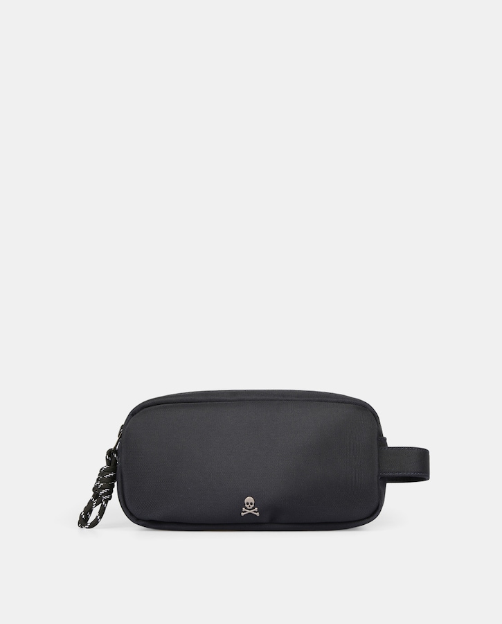 Necessaire com símbolo Scalpers na parte da frente fabricado em tecido técnico. Tem bolso com fecho de correr duplo e pega lateral.