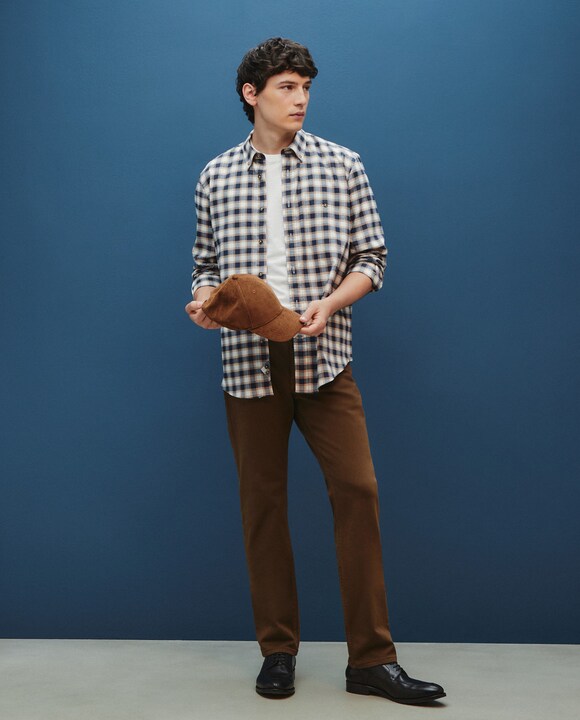 Corte tradicional. São as mais confortáveis. Corte direito e amplo, gancho largo e manga standard.