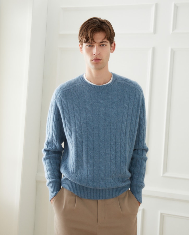 Camisola de Malha do Cabo com Caxemira e Gola Redonda