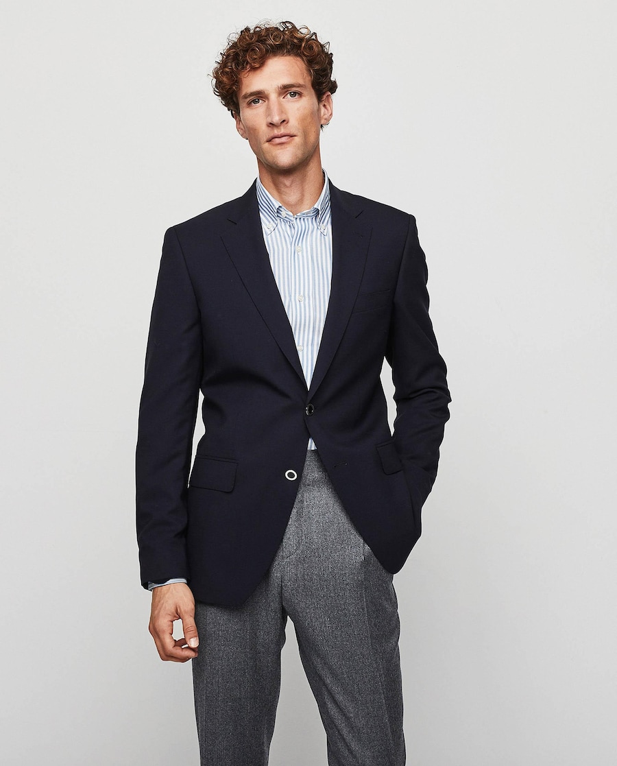 Blazer de lã com fecho de uma fila com dois botões e costas com duas aberturas. Os botões são metálicos e inclui-se como alternativa um jogo completo de botões de pasta. Uma peça básica imprescindível como fundo de armário.