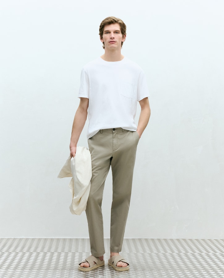 Levemente estreitos, mas confortáveis. Anca e largura da perna estilizadas, corte ajustado no tornozelo. (Comprimento das calças à altura do tornozelo: 41 cm).