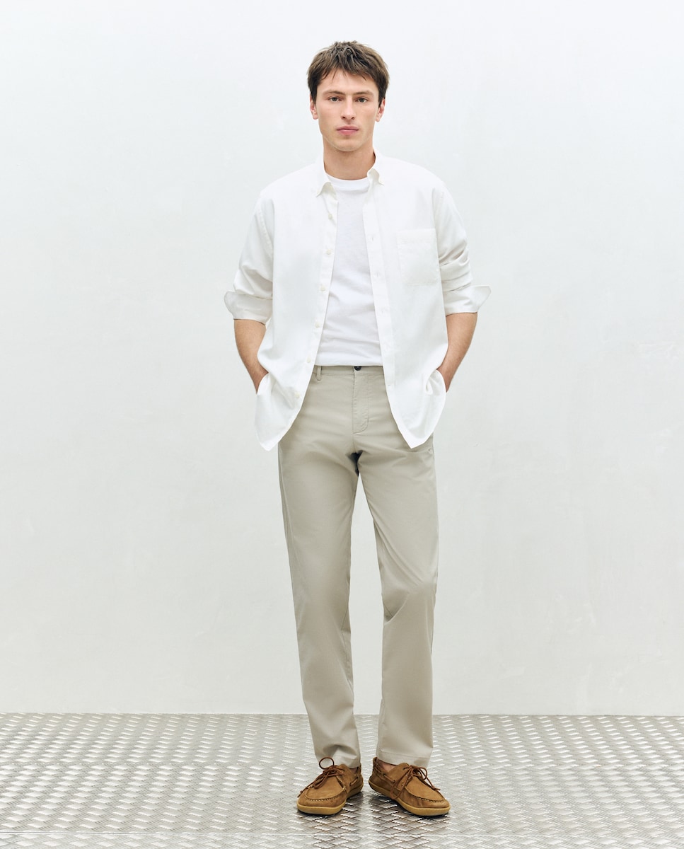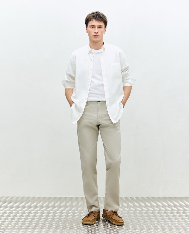 Levemente estreitos, mas confortáveis. Anca e largura da perna estilizadas, corte ajustado no tornozelo. (Comprimento das calças à altura do tornozelo: 41 cm).