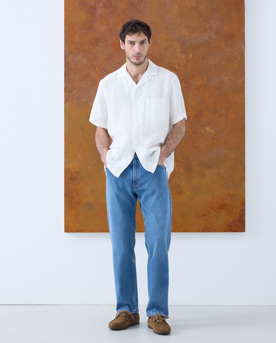 Levemente estreitos, mas confortáveis. Anca e largura da perna estilizadas, corte ajustado no tornozelo. (Comprimento das calças à altura do tornozelo: 41 cm).