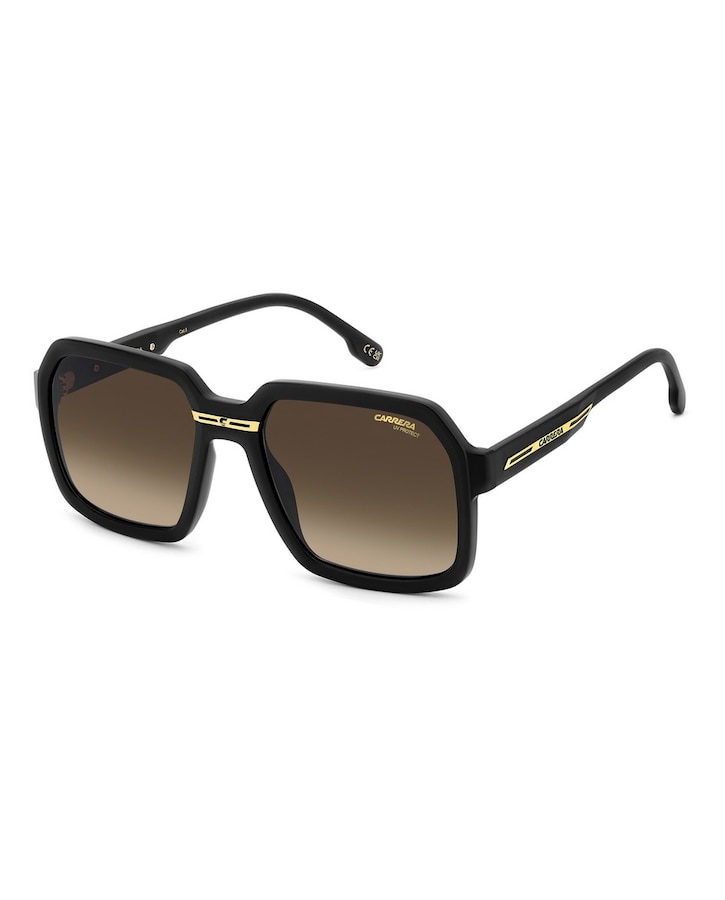 Explorando os seus arquivos, a Carrera fabricou estes óculos de sol em Itália, como se pode ver no interior da haste. Numa interpretação contemporânea de um símbolo da marca Carrera, a placa de metal com o logótipo "C" destaca-se na ponte. Há também uma inserção de metal nas hastes, com o logótipo long-form e a bandeira Carrera. As armações podem ser equipadas com lentes de sol de prescrição médica. Disponível numa versão com lentes espelhadas.