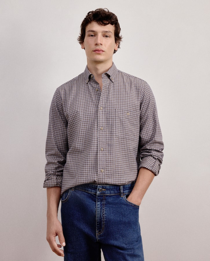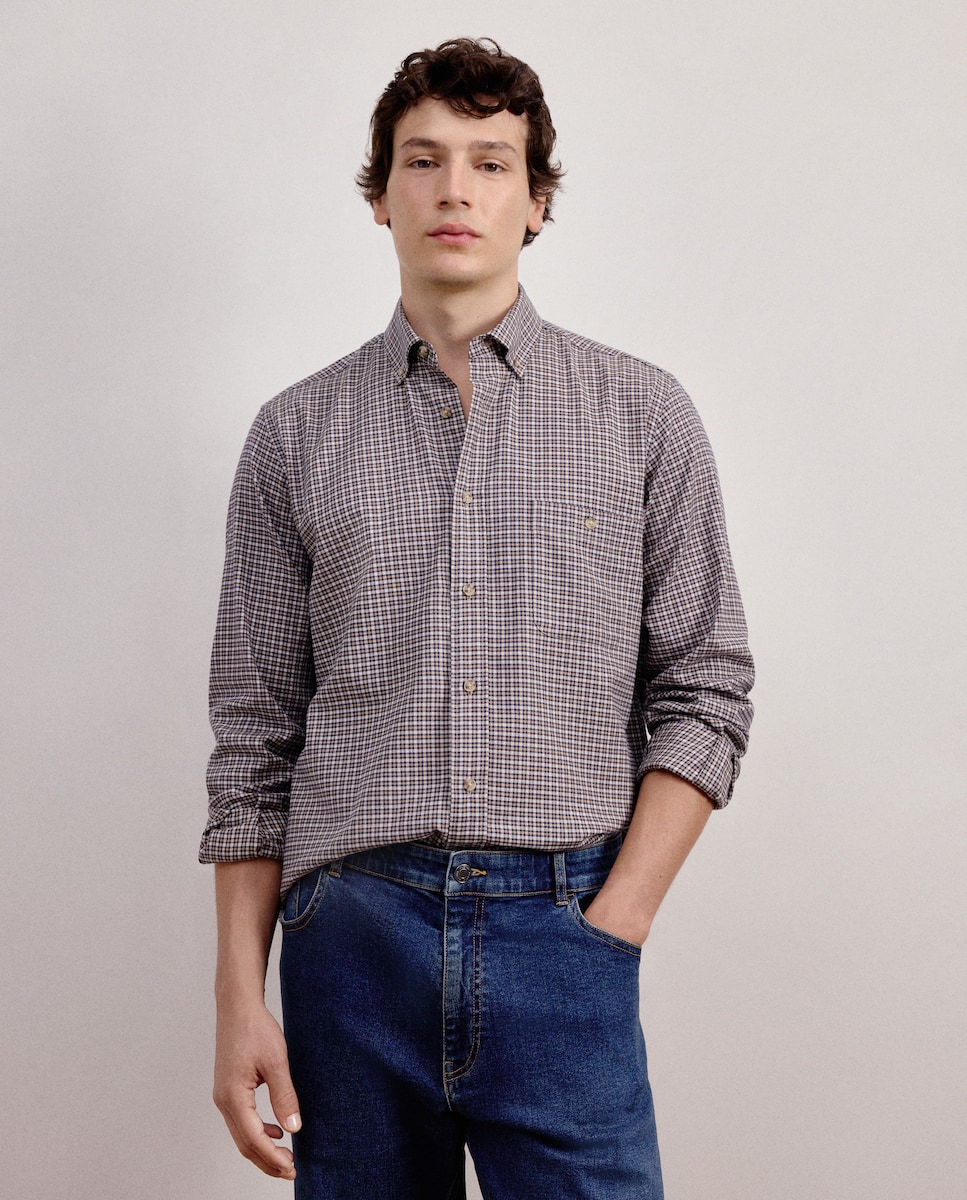 Camisa Villela aos Micro Quadrados com Manga Comprida e Padrão Clássico.