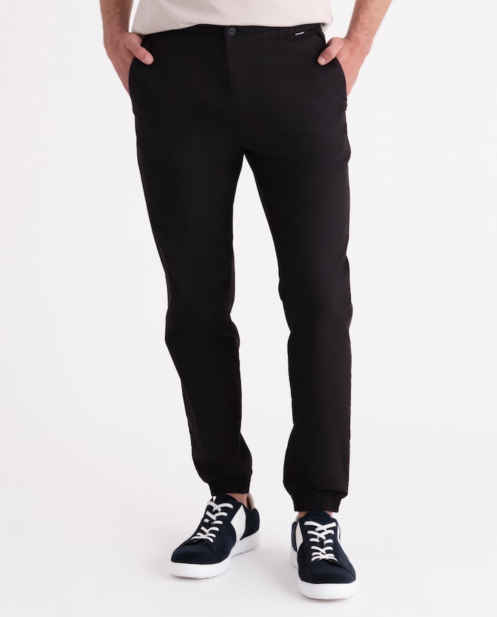 Silhueta contemporânea, largas em cima e que vão ajustando desde o joelho até ao tornozelo. (Medida das calças à altura do tornozelo 34 cm).
