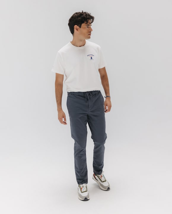 Levemente estreitos, mas confortáveis. Anca e largura da perna estilizadas, corte ajustado no tornozelo. (Comprimento das calças à altura do tornozelo: 41 cm).