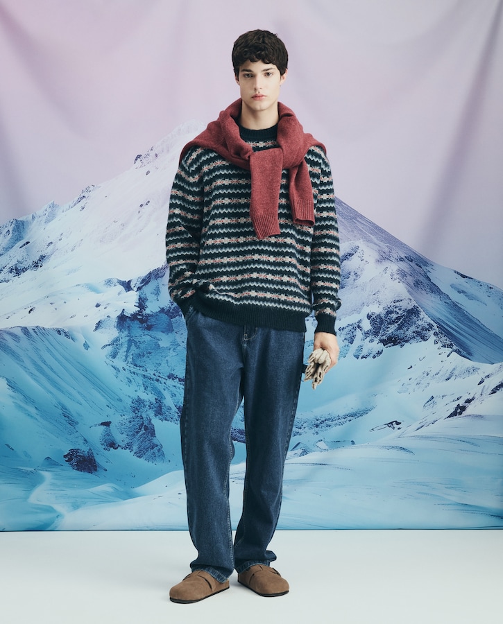 Camisola de Malha de Gola Redonda com Jacquard de Motivos Natalícios