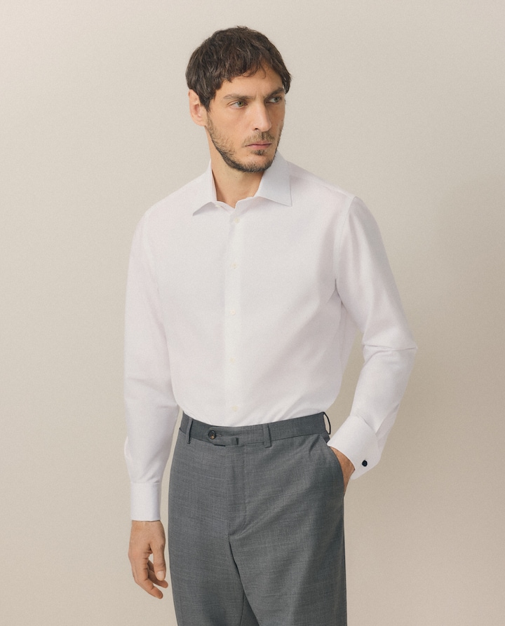 Relaxed fit estreito. Realça a figura, mantendo, ao mesmo tempo, o conforto. Gancho amplo, largura da manga que não restringe os movimentos.