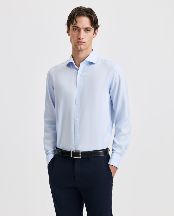 Relaxed fit estreito. Realça a figura, mantendo, ao mesmo tempo, o conforto. Gancho amplo, largura da manga que não restringe os movimentos.