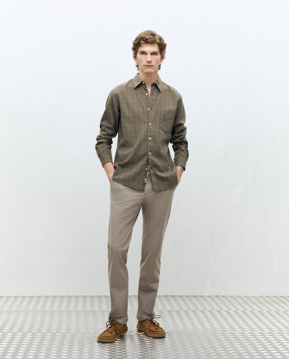 Levemente estreitos, mas confortáveis. Anca e largura da perna estilizadas, corte ajustado no tornozelo. (Comprimento das calças à altura do tornozelo: 41 cm).