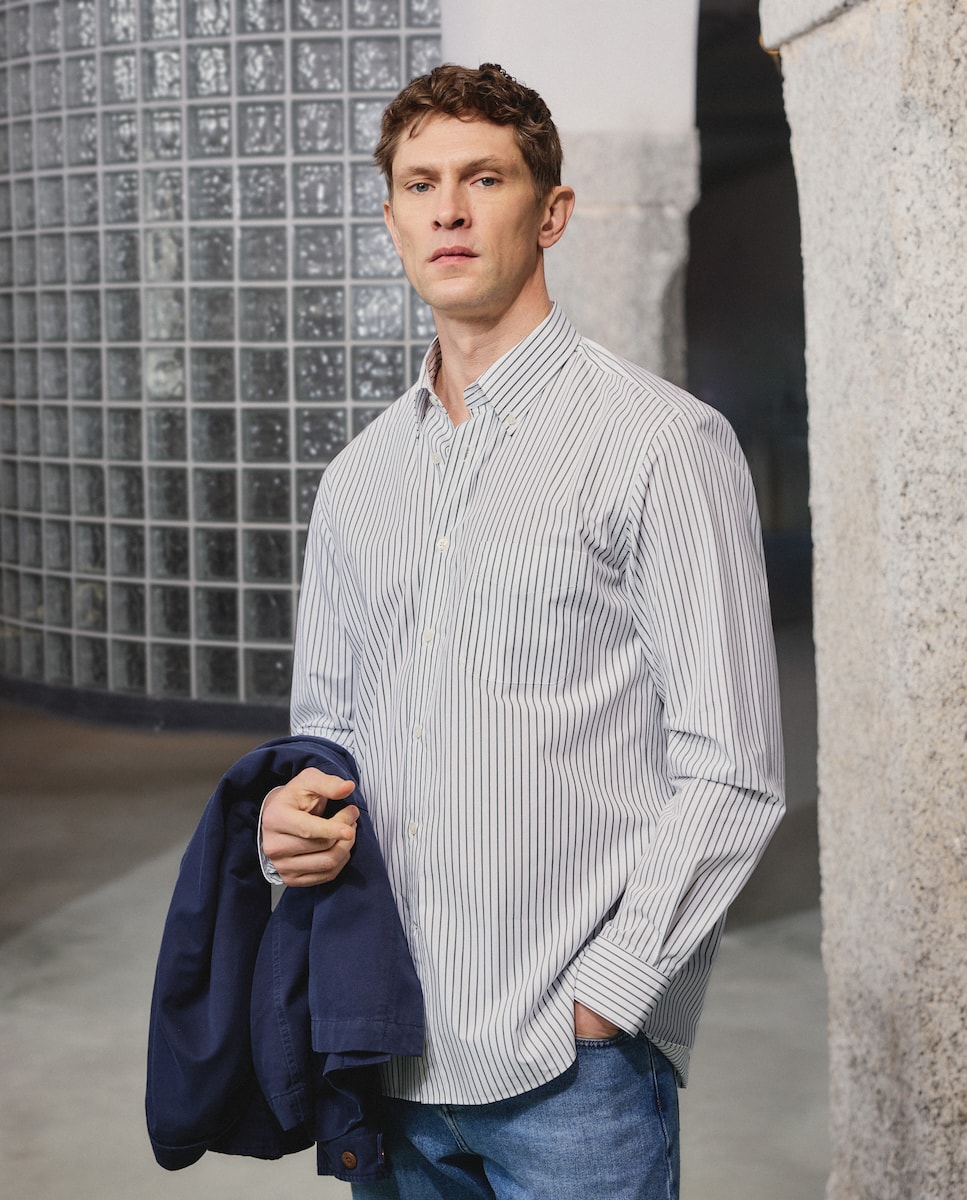 Corte tradicional. São as mais confortáveis. Corte direito e amplo, gancho largo e manga standard.