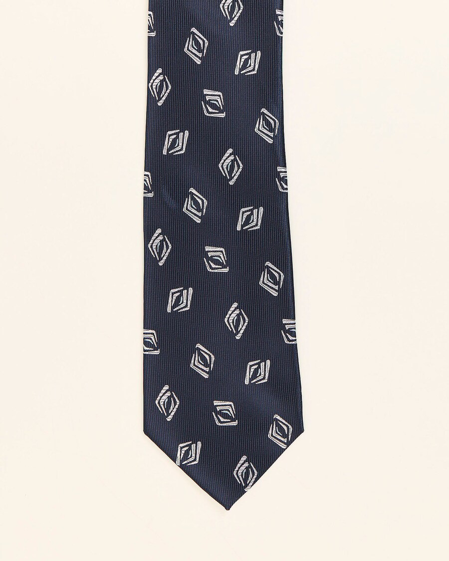 Gravata PuroEGO estampada abstrata com fundo azul-marinho. Largura de pala 8 cm. 100% poliéster.