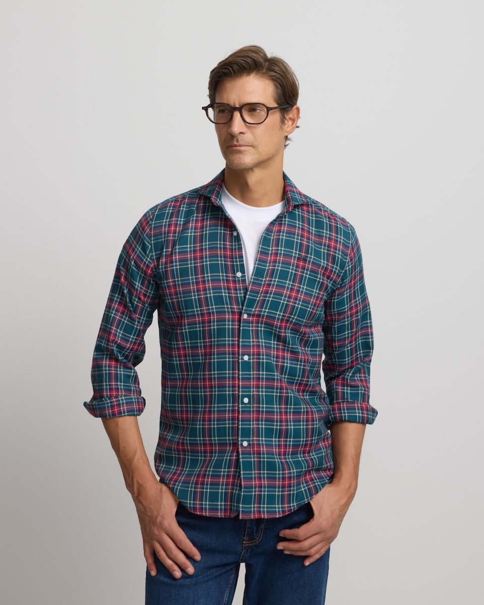 Camisa aos quadrados sport aos quadrados tartan confecionada em 100% algodão BCI. Apresenta gola cutaway, fecho com botões personalizados e manga comprida de punho com botões. Conta com raquetes bordadas em contraste no torso. O algodão BCI é uma fibra natural sustentável. Com esta iniciativa ajudamos a melhoria do meio ambiente favorecendo a rotação de culturas, evasão de pragas ou redução do uso da água.