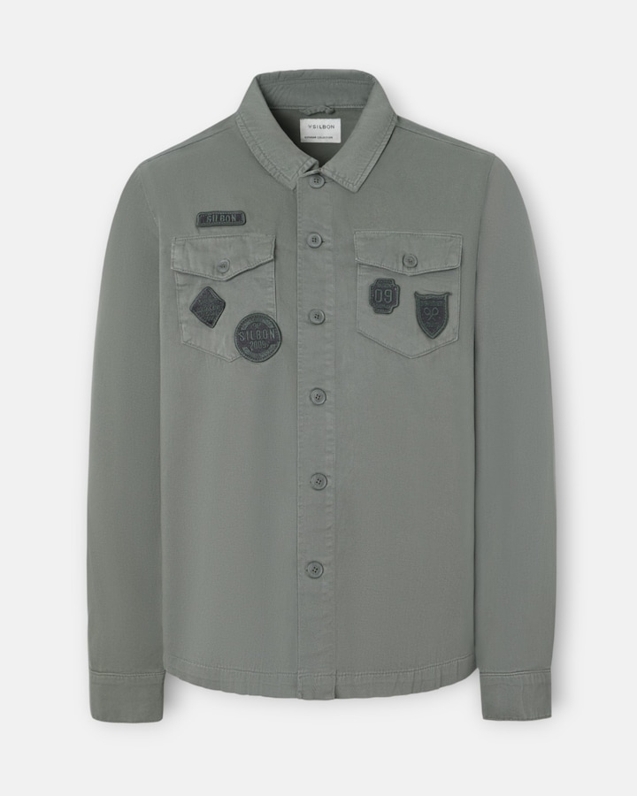 Sobrecamisa com bolsos confecionada em 100% algodão BCI. Apresenta gola clássica, fecho com botões personalizados ao tom, bolsos frontais com aba e manga comprida. Conta com patches personalizados ao tom no torso.