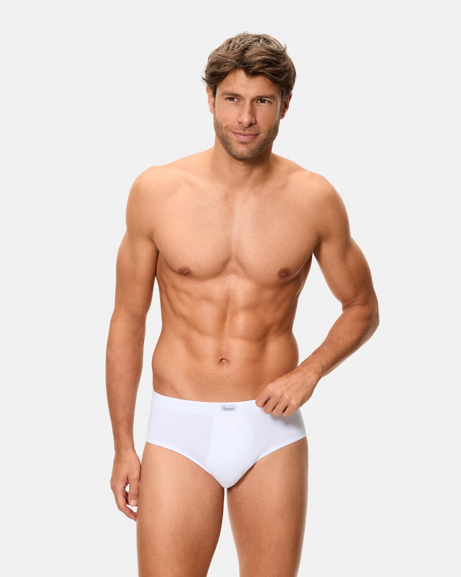Cueca slip semi-curta fechada e com padrão clássico. Confecionada em algodão 100% de máxima qualidade em tecido de malha lisa. Dispõe de cintura com borracha revestida. Máximo conforto e conforto, proporciona grande sustentação.