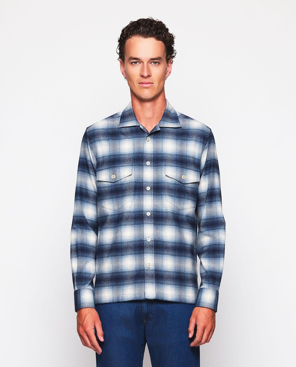 Sobrecamisa aos quadrados 100% algodão de flanela, gola italiana sem tira, dois bolsos com aba no peito, manga comprida, punho com botão duplo, classic fit.