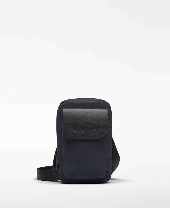 Mala a tiracolo de aba com fecho zip. Conta com um compartimento, abertura superior com fecho zip e bolso patch frontal com aba em pele não pele. Possui alça com logotipo, mosquetões metálicos e logotipo frontal gravado.
