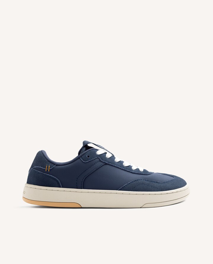 Sapatilhas em pele com acabamento camurça e contrastes de cor. Concebidas seguindo as tendências minimalistas para garantir a pisada natural. Incluem uma palmilha de transição para facilitar uma adaptação progressiva a quem se inicia no calçado barefoot. As possíveis variações na pele ou no acabamento entre ambos os pés refletem a autenticidade do processo artesanal e do uso de peles naturais. Características especiais: Flexíveis e torsionáveis. Sem reforços que ferulizem. Sola plana e flexível de borracha. Biqueira ampla. Sem desnível (drop zero). Corte em pele e poliuretano. Forro e palmilha de poliéster respirável.