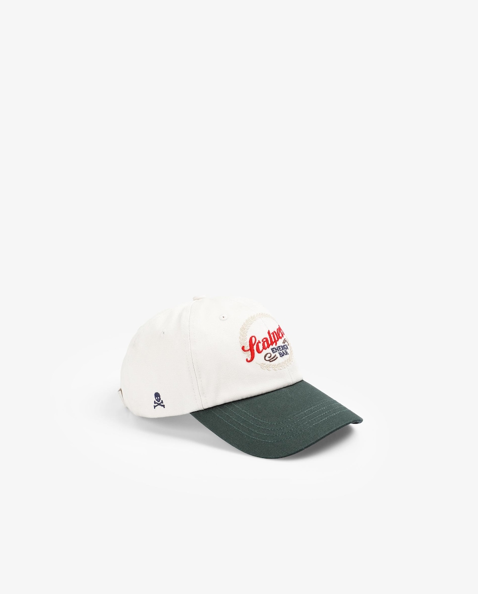 Boné confecionado em 100% algodão. Logo bordado frontal. Fecho ajustável posterior e caveira bordada em contraste na lateral. Detalhe etiqueta com logo parte posterior. Aba em contraste.