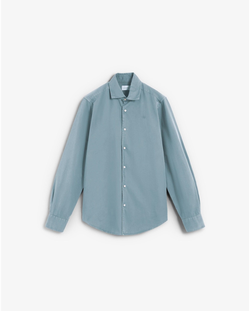 Camisa confecionada em 100% Algodão Orgânico. Corte Regular. Gola Italiana. Fecho mediante botões no frontal. Mangas compridas com punhos com botões. Emboço no punho. Detalhe de caveira bordada em tom.
