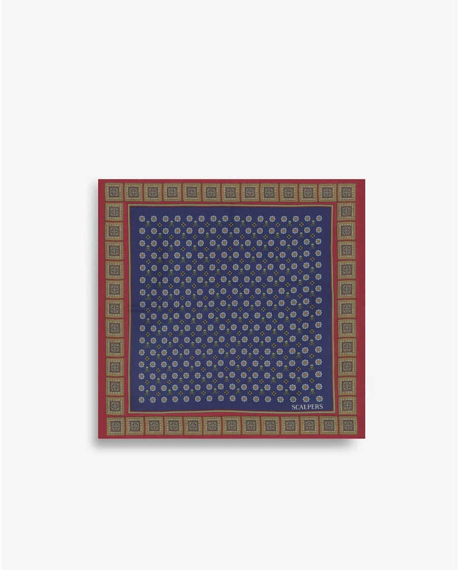 Lenço estampado confecionado em 100% seda.