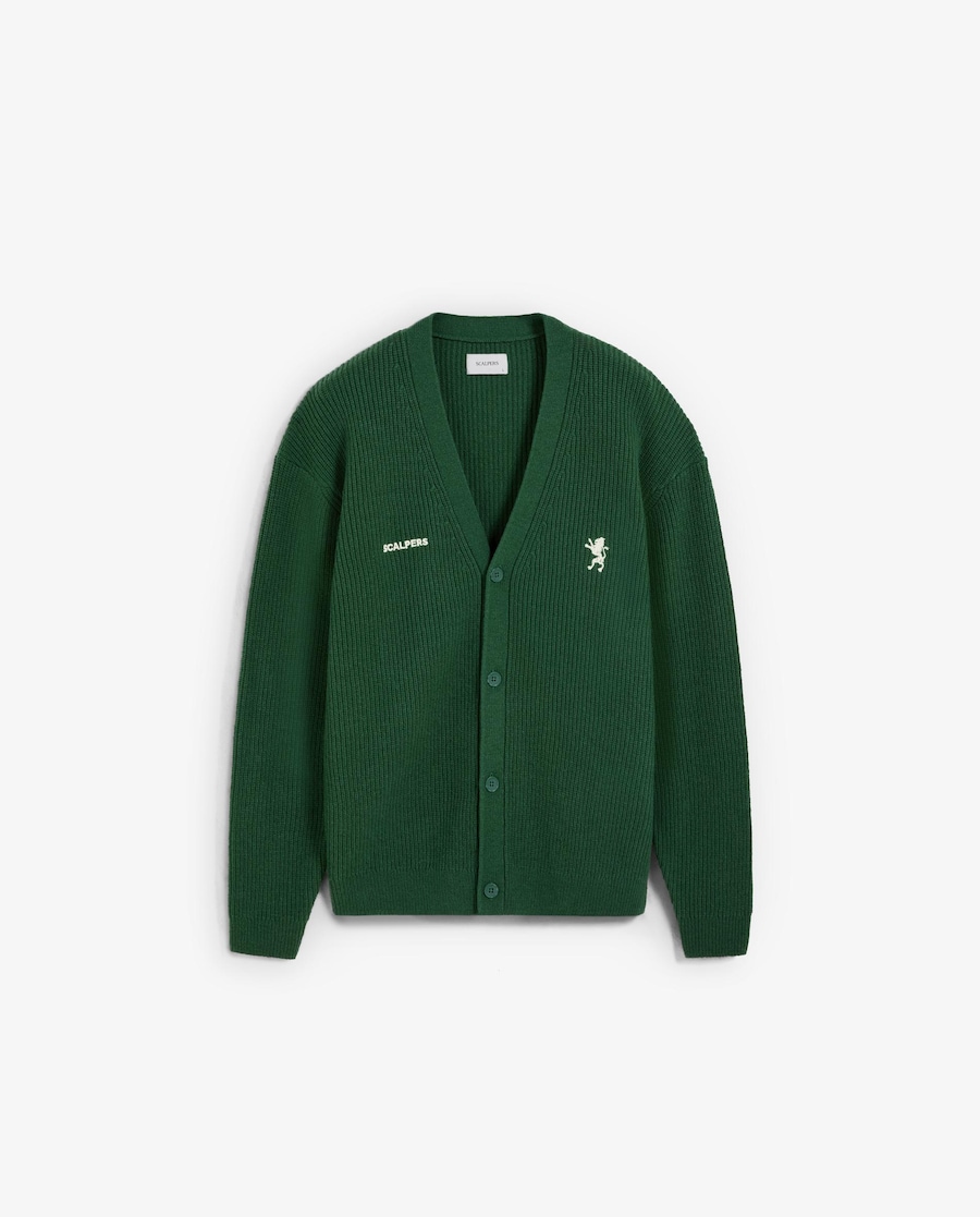 Cardigan de malha confecionado em mescla de lã. Gola em V e manga comprida. Logotipos bordados na parte frontal. Acabamentos em rib. Detalhe de etiqueta na lateral esquerda. Fecho frontal de botões. Colaboração especial Scalpers x Sporting Clube de Portugal.