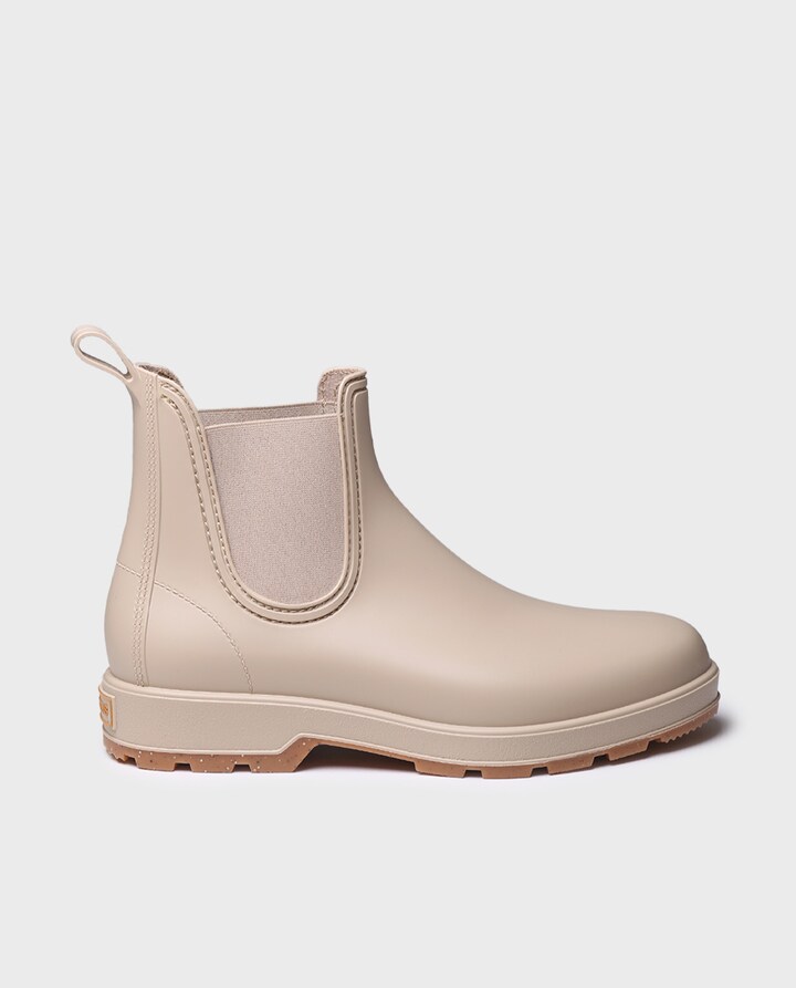 BERNIE. Estes botins de água para homem estão feitos de borracha e elásticos laterais. Trata-se da reinvenção do clássico botim Chelsea em versão impermeável. A sola tem uma altura total de 3 cm. A palmilha interior está forrada em tecido acolchoado para maior conforto. Os elásticos e a tira posterior facilitam a sua colocação. Trata-se de um design vegano. Este modelo calça o tamanho habitual, se estiver entre dois tamanhos recomendamos escolher o mais pequeno.