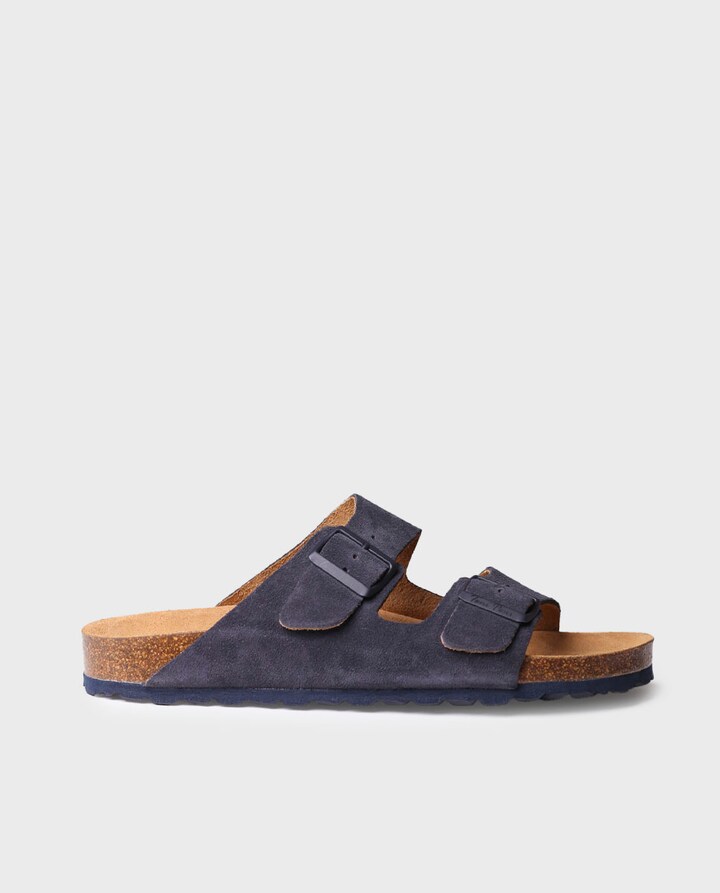 GER-QT. Estas sandálias de homem com fivelas tipo BIO estão elaboradas em camurça. A sola de cortiça e borracha EVA tem uma altura total de 2,5 cm. A planta está forrada em camurça para maior conforto. Conta com duas tiras superiores com fivelas ajustáveis para aportar a maior sustentação. Este modelo calça o tamanho habitual, se estás entre dois tamanhos te recomendamos escolher o maior.
