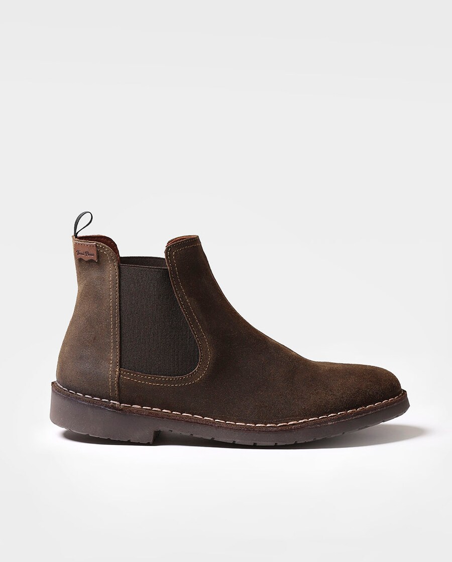 JOEL-SW de Toni Pons. Botins para homem em camurça envernizada. São elaborados em tons lisos. A sola tem 2,5 cm de espessura, dos quais 1,5 pertencem ao tacão e 1 cm à sola que está feita de borracha. A palmilha interior está forrada para maior conforto.