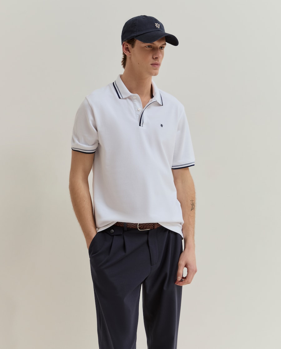 Polo regular fit em piqué de algodão