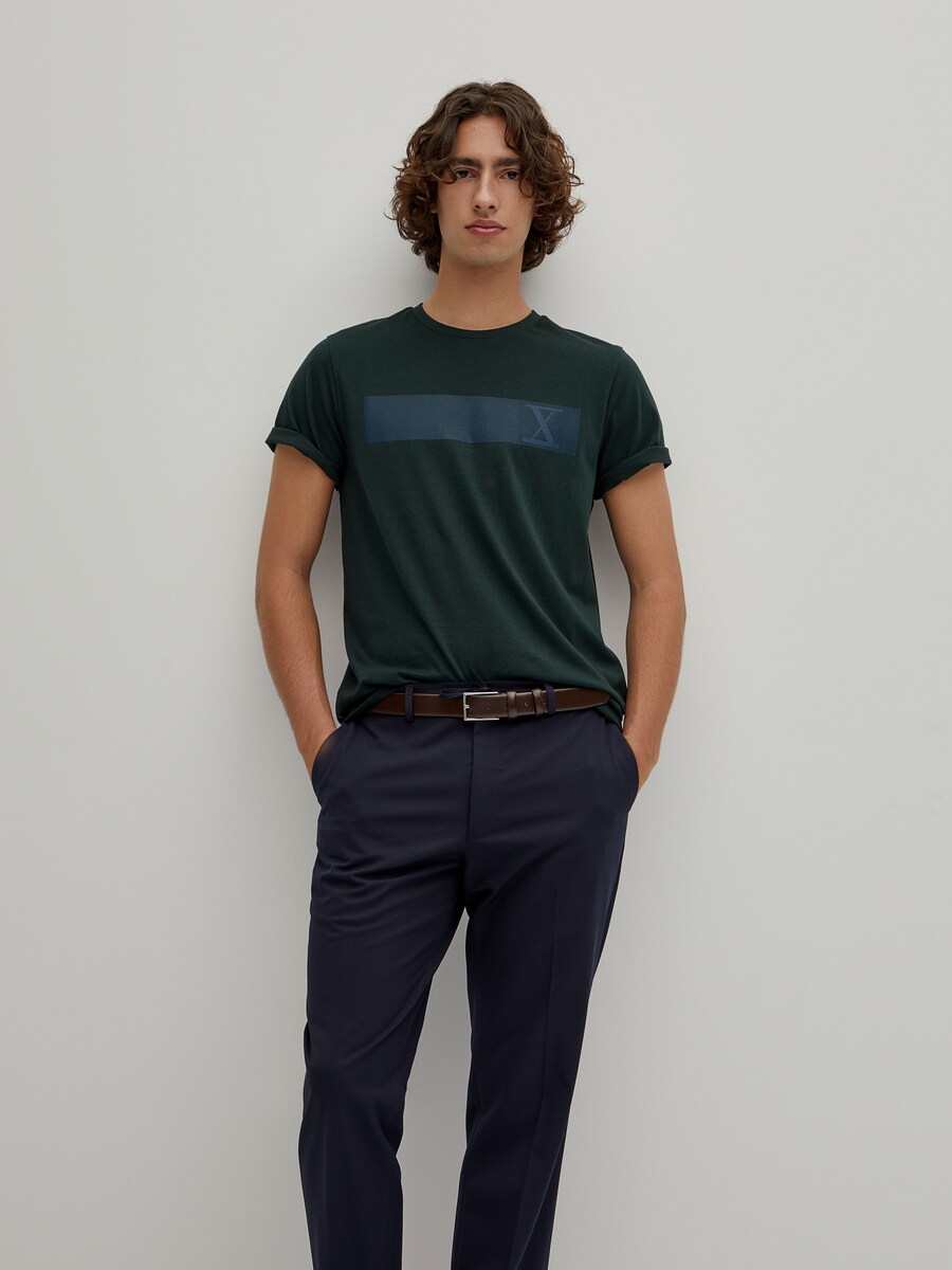 T-shirt de manga curta em algodão com estampado em contraste na zona do peito.