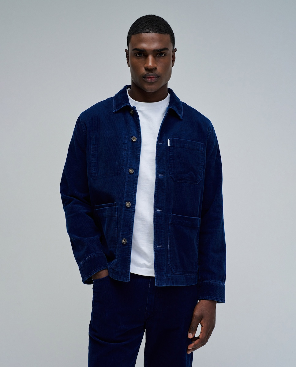 Camisa de bombazina azul, com corte regular e gola clássica. Cómoda e versátil, apresenta fecho com botões, mangas compridas com botão e três bolsos funcionais, que reforçam seu caráter prático. Uma peça ideal para sobrepor ou usar como casaco leve, perfeita para completar looks casuais com um toque de estilo relax. Camisa de bombazina . Cor azul . Corte regular . Gola clássica . Mangas compridas com botão . Fecho com botões . Três bolsos . Para referência, o modelo mede 1,90m e está usando o tamanho L.