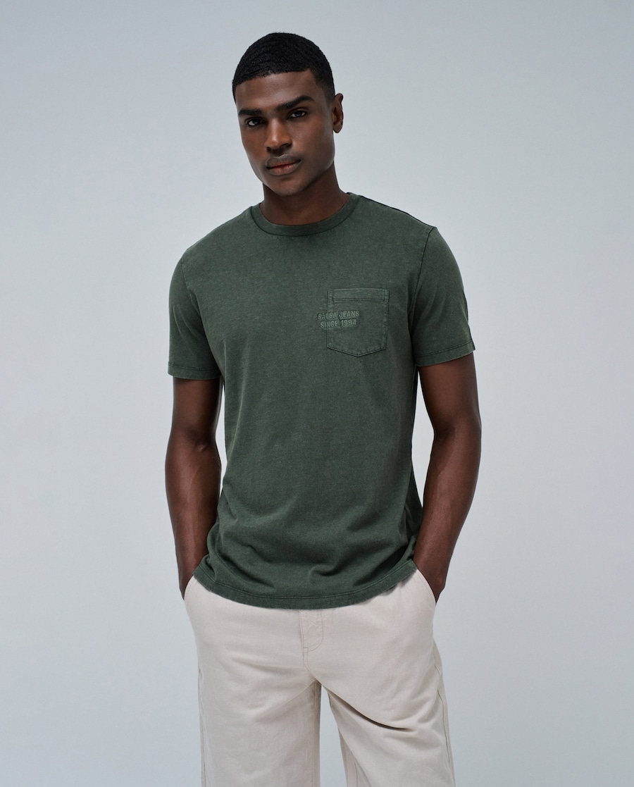 Essencial no teu armário, esta T-shirt combina conforto e estilo num ajuste slim que realça a silhueta. Com manga curta, gola redonda e um bolso no peito com branding discreto, é a peça perfeita para um look casual com um toque de personalidade.- T-shirt com branding- Ajuste slim- Manga curta- Gola redonda- Bolso no peito com brandingPara referência, o modelo mede 1,90m e está usando o tamanho L.