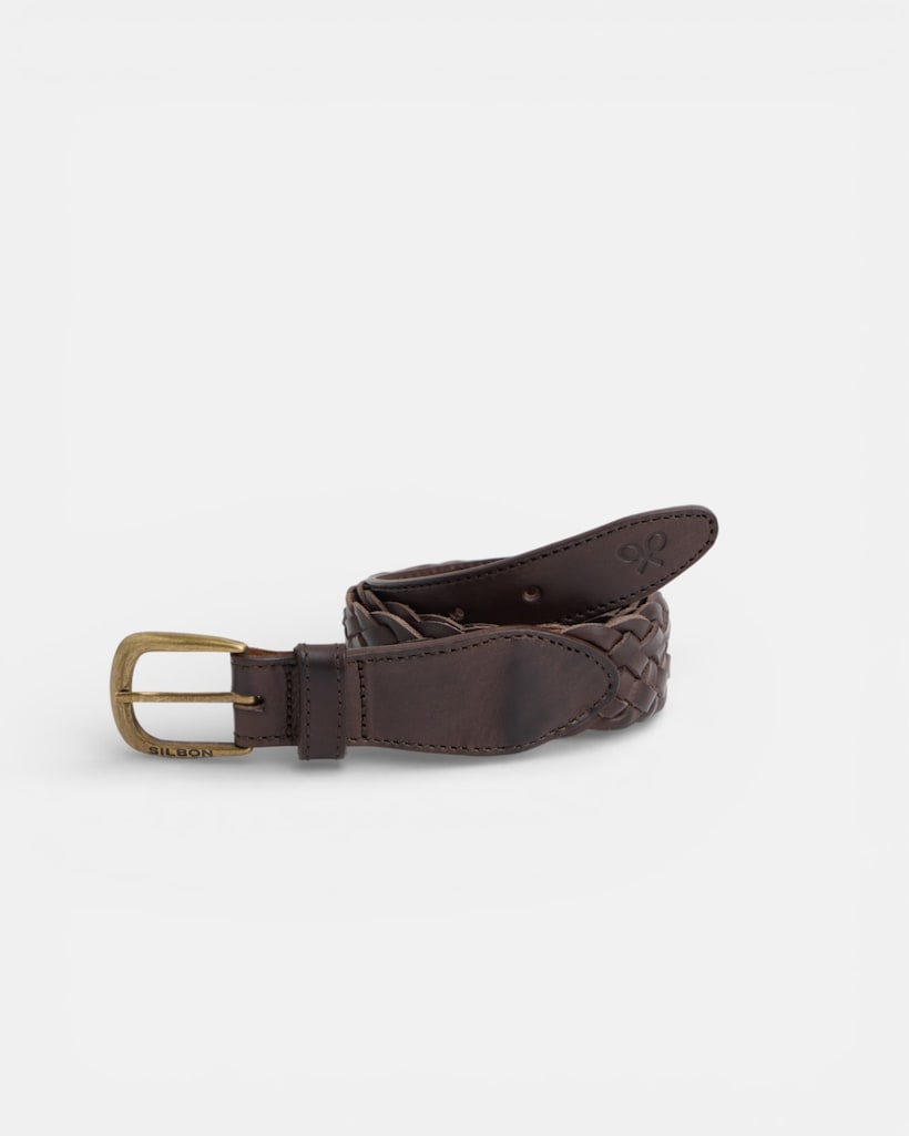 Cinto Entrançado de Pele em Castanho