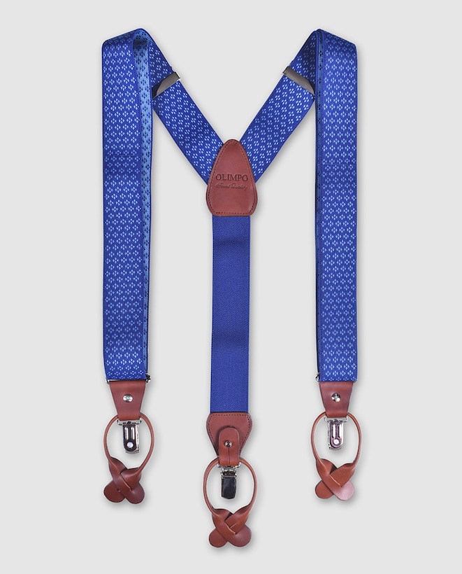 Suspensórios Olimpo elásticos azul índigo com estampado de fantasia