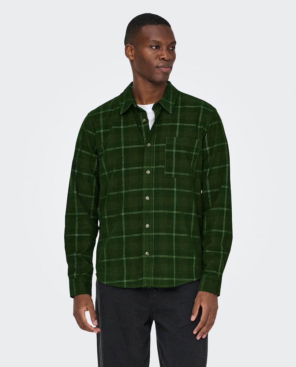 Camisa de Bombazina com Manga Comprida. Regular Fit. 100% Algodão.