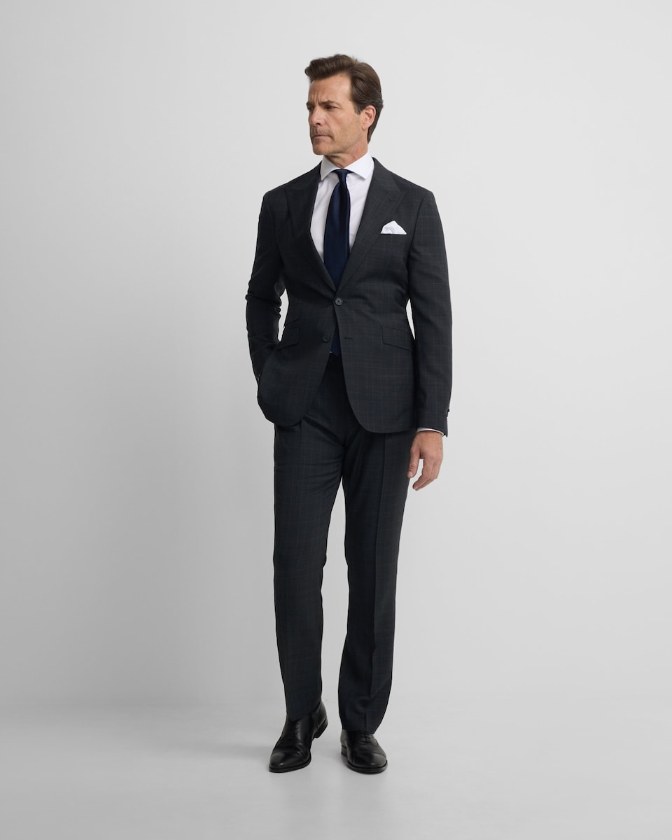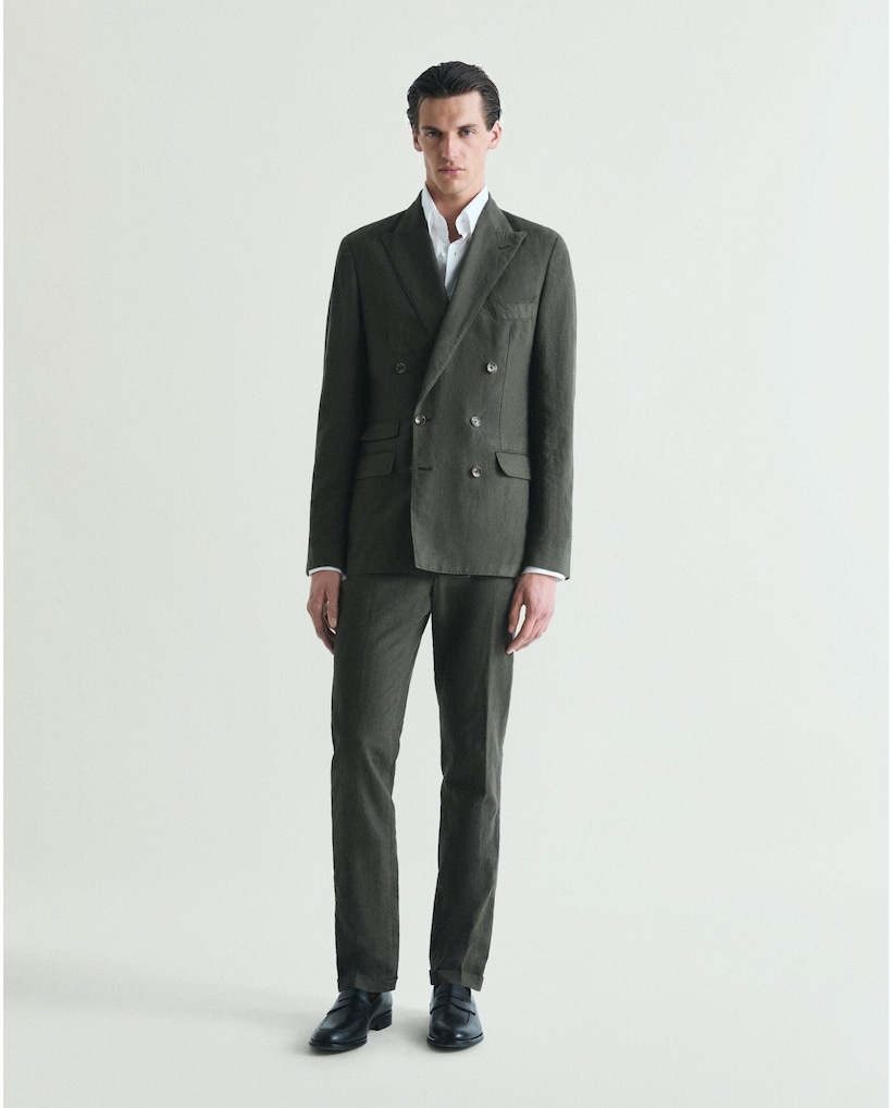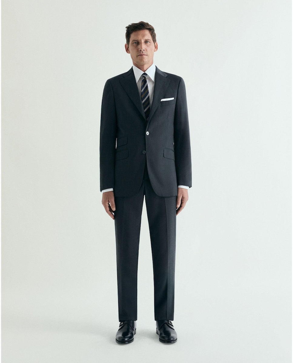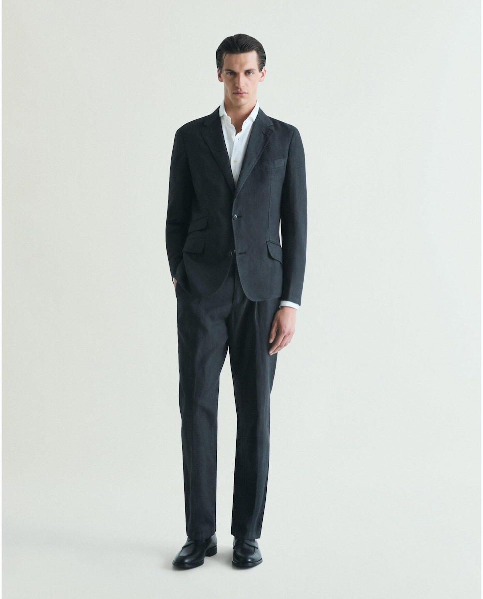 Calças de Fato com Corte a Direito e Fecho Zip e Botão