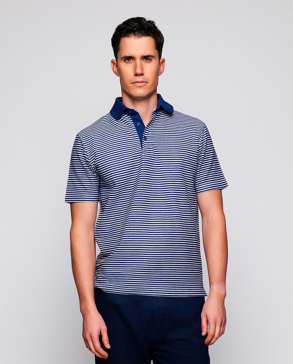 Polo de Manga Curta com Risca Horizontal sem Bolso